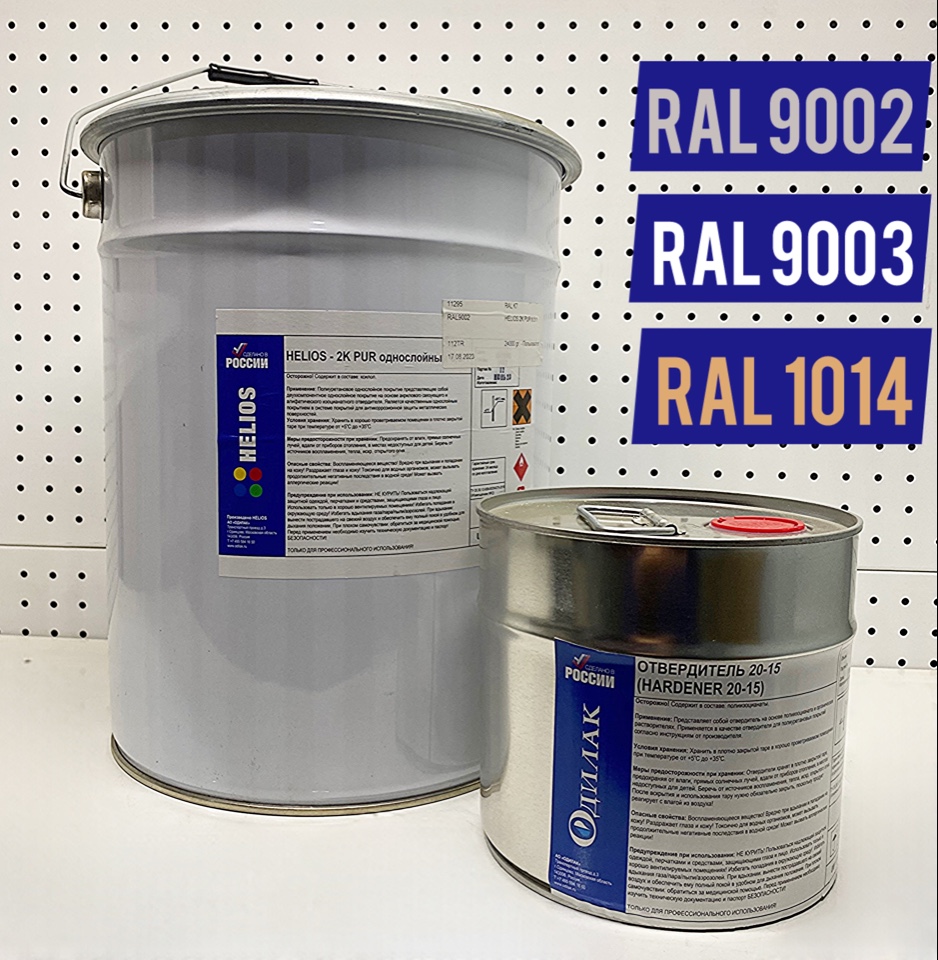 Полиуретановая полуглянцевая грунт-эмаль Helios 2K PUR 6,5 : 1 RAL 1014, 9002, 9003.